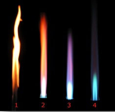 - Hogy a gázégő beállítása optimális-e, arról legkönnyebben a gázláng színét megvizsgálva győződhetünk meg: ilyenkor kék, a csúcsoknál enyhén lilás árnyalatú.